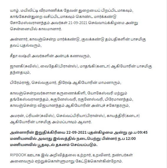 அவர்களுக்கு மயிலிட்டி மக்கள் ஒன்றியம் தனது ழ்ந்த இரங்கலை தெரிவிக்கிறது